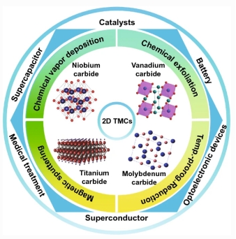 二维过渡金属碳化物(2D TMCs)由于其高体积电容、电致变色性能、高电子电导率、高熔点、高硬度、高化学稳定性等的优异物理化学性能,近年来已经成为储能、催化、电磁屏蔽、传感器、超导等领域的研究热点。虽然质量级TMCs粉末材料制备取得了一些进展,但面向电子器件用TMCs薄膜的制备还面临重要挑战。以碳化铌、碳化钒、碳化钛和碳化钼为例,本文系统地总结了几种典型的TMCs结构、相图结构和理化性质。在此基础上,总结讨论了TMCs的可控合成策略,包括化学刻蚀、化学气相沉积和程序控制升温法等。并对其近年来潜在应用进行了总结,着重讨论了TMCs在催化、储能、光电器件、超导效应及生物医疗等领域的应用。最后本文讨论了TMCs研究中的挑战和前景,为进一步的研究提供了启发。