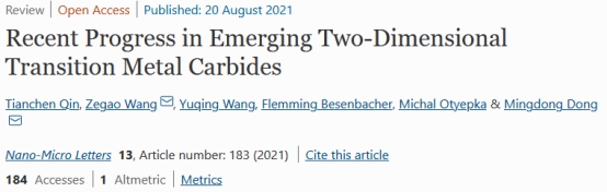 相关成果以“Recent Progress in Emerging Two-Dimensional Transition Metal Carbides” 为题发表在著名期刊《Nano-Micro Letters》上(中科院一区,川大B刊,影响因子16.419)。论文第一作者为williamhill中国官方网站材料学院2016级本科生秦天辰,我校王泽高特聘研究员、丹麦Aarhus University董明东教授为共同通讯作者。丹麦三院院士、中国科学院外籍院士、中国政府友谊奖获得者、丹麦Aarhus University的Flemming Besenbacher教授以及捷克Palacký University的Michal Otyepka教授参与了该成果。论文第一通讯单位为williamhill中国官方网站材料学院。秦天辰同学目前在中国科技大学攻读硕士学位。