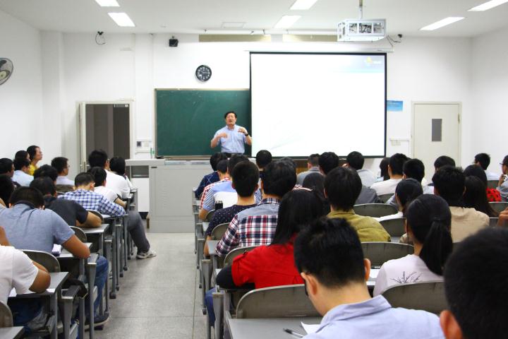 报告开始由吴家刚副教授对本次报告作了介绍,也对张西祥教授做了详细的介绍。接下来张教授上台为大家做本次报告。报告分两部分组成,第一部分张教授和同学们分享了科研上的成果,其主要研究方向是磁性材料和石墨烯的研究,均取得瞩目的成果,其测量石墨烯磁性和围绕此方面的理论研究都深深吸引了大家的注意力。讲解完成后,在场的同学们积极的向张教授提出了众多学术问题,张教授都一一给予了耐心的解答。第二部分,张教授主要对他所任教的沙特阿卜杜拉国王科技大学做了简单的介绍,从学校的成立目的,学生的生活,学习,科研环境,到近年来学校取得的一些科研成果以及在世界范围内的排名等方面为大家展现了一个生活优越,科研发展快速的新型研究型大学,打动了在座的同学们,张教授表示欢迎同学们选择他们的学校进行深造,并邀请同学们关注17号进行的正式招生的宣传。