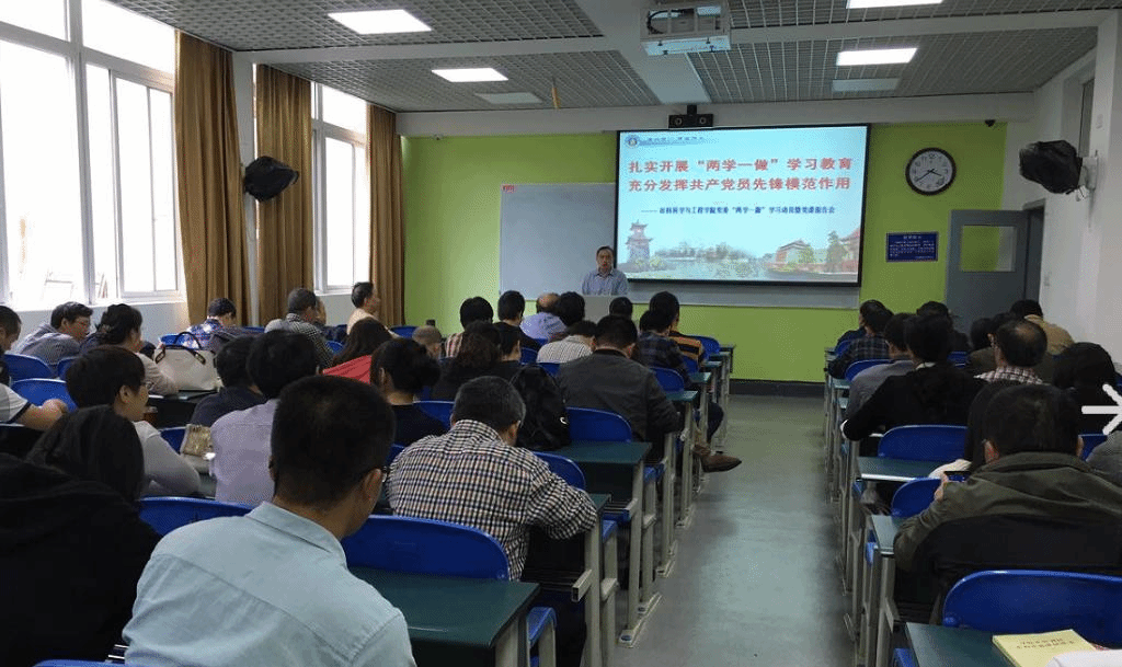 接下来,尹院长结合学院的教学、科研工作的开展情况,讲解了学院“两学一做”学习教育活动的主要内容和主要措施,按照中央要区分层次、有针对性地解决问题的要求,对普通党员和处级以上领导干部提出不同的学习要求。对普通党员,要把学习党章党规与学习习近平总书记系列重要讲话精神统一起来,在学系列讲话中加深对党章党规的理解,在学党章党规中深刻领悟系列讲话的基本精神和实践要求;对学院中层以上党员领导干部要在学习教育中作出表率,紧密联系领导工作实际,学得更多一些、更深一些,要求更严一些、更高一些,努力提高思想政治素质和理论水平。按照学校的总体时间要求,分四个时间段完成各阶段的学习和教育任务,学习讨论要紧密结合现实,联系个人思想工作生活实际,通过学习讨论,真正提高认识,找到差距,明确努力方向。党员领导干部要按照政治家、教育家要求,做信念坚定、为民服务、勤政务实、敢于担当、清正廉洁的好干部;教师党员要自觉践行“四有”好老师标准,自觉爱党护党为党,敬业修德,带头践行社会主义核心价值观,不断提高业务能力和教育教学质量,做学生健康成长的指导者和引路人。