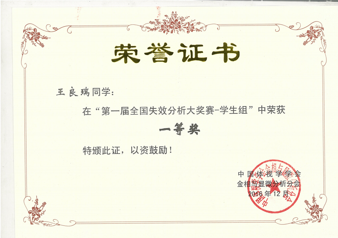 失效分析工作是一项必须综合运用材料学、力学、机械学、工程学以及其他多学科领域知识的综合性工,也是检验参赛学校综合教学质量的一次大赛。本次大赛共吸引了包括复旦大学,哈尔滨工业大学,东北大学等在内的二十余所高校参赛。我院王良瑞同学获得大赛一等奖的好成绩,证明了我院在本科生综合技能培养中取得的良好效果。