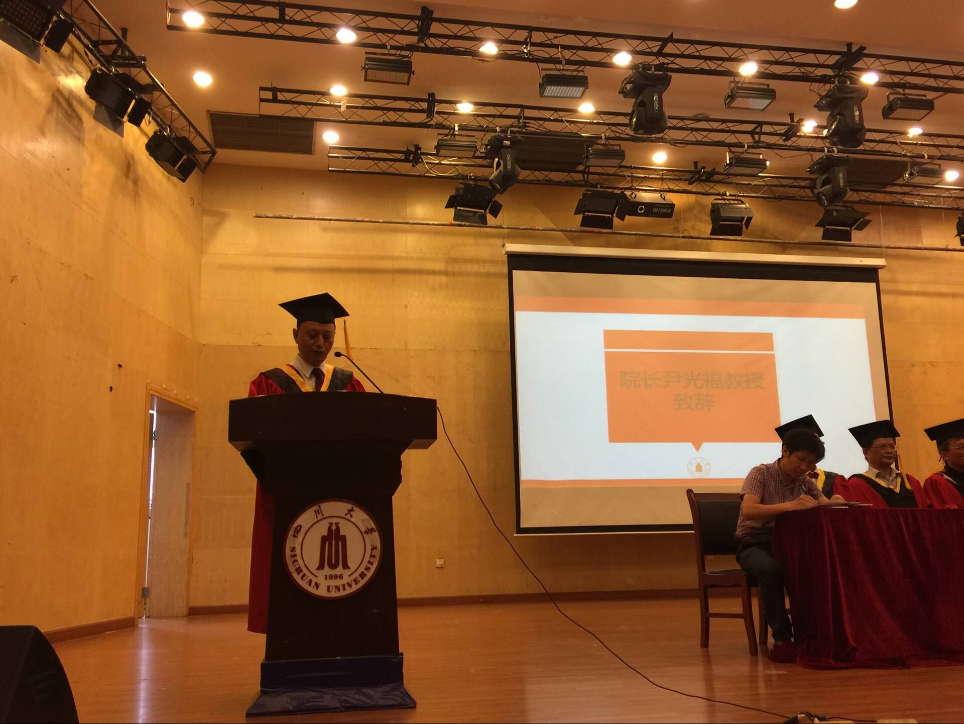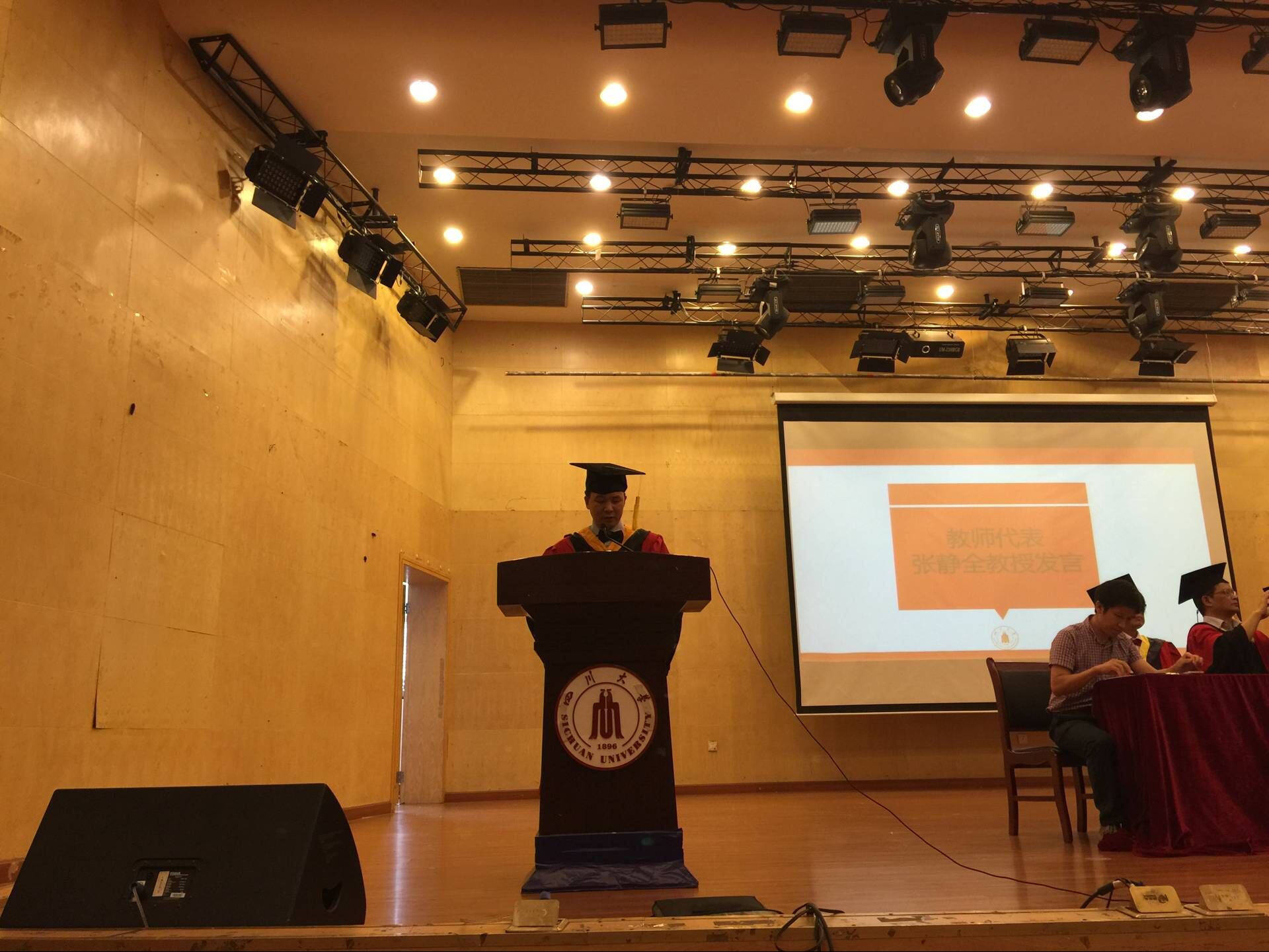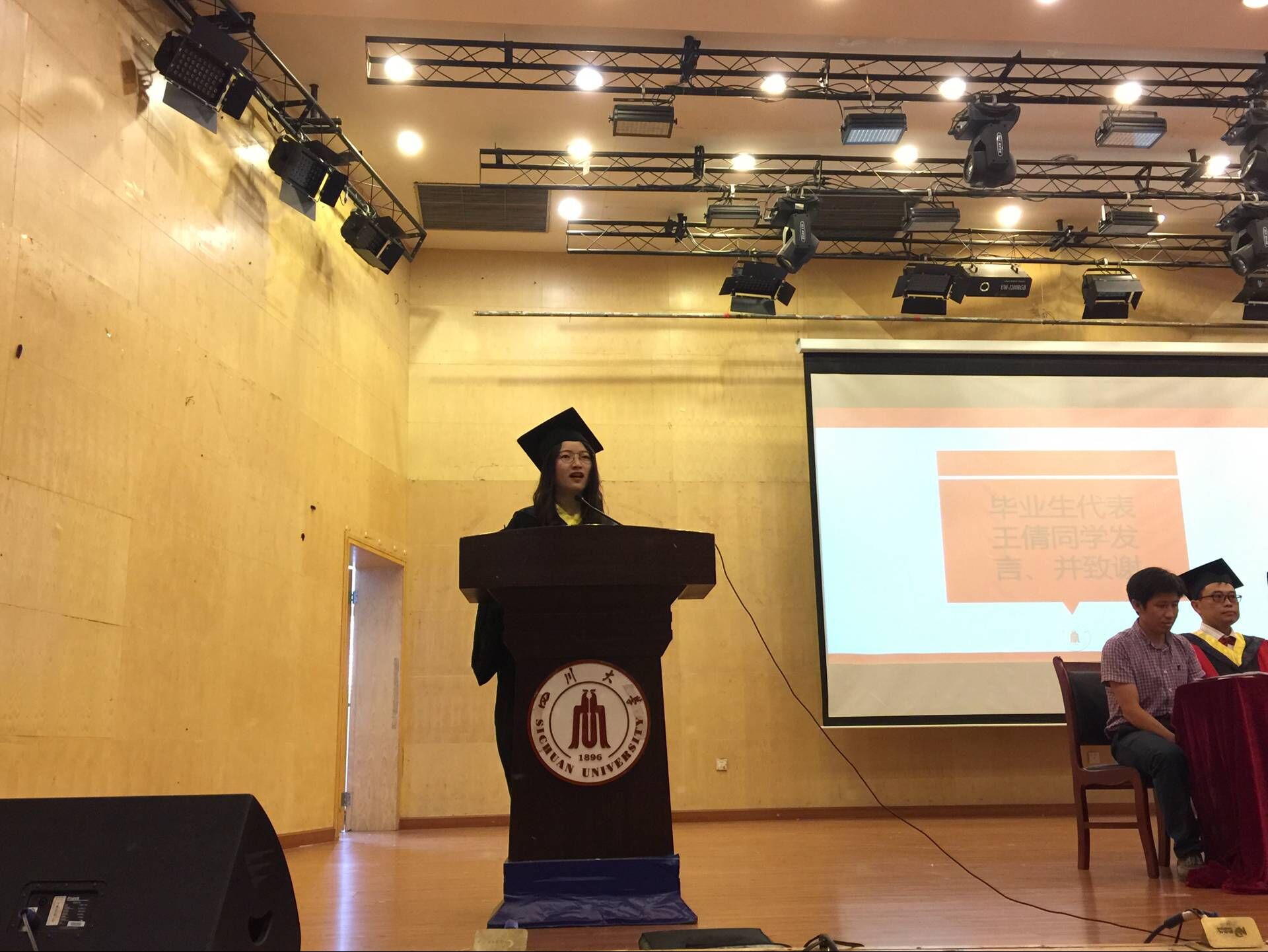 2017年6月12日上午8:20,在文华活动中心二楼音乐演播厅举行了2017届williamhill中国官方网站毕业典礼。williamhill中国官方网站院长尹光福教授、党委书记朱建国教授、副院长刘颖教授、工会主席周大利教授、副院长孙小松教授、党委副书记唐世红老师、新能源系主任陈云贵教授、材料科学系主任张静全教授、无机生医系党支部书记黄忠兵教授等诸位领导、老师,2017届博士、硕士以及学士共356名毕业生齐聚一堂。典礼由williamhill中国官方网站党委副书记唐世红老师主持。院长尹光福教授发表了满怀深意的讲话,向所有毕业生表达了殷切的期望和浓浓的祝福。党委书记朱建国教授宣读了2017届省级校级优秀毕业生优秀学生干部的表彰决定,向2017届的优秀毕业生们表示了真挚的祝贺。教师代表张静全教授代表全体教职工向材料学院全体毕业生表达了深切的祝愿。随后2013级本科毕业生王倩同学代表全体毕业生发表了主旨为“知识与担当”的演讲。最后是毕业典礼授位仪式,老师们将毕业证书和学位证书一一交到同学们手中,并对同学们表示祝贺。2017届毕业典礼在同学们的高兴与不舍中落下了帷幕。