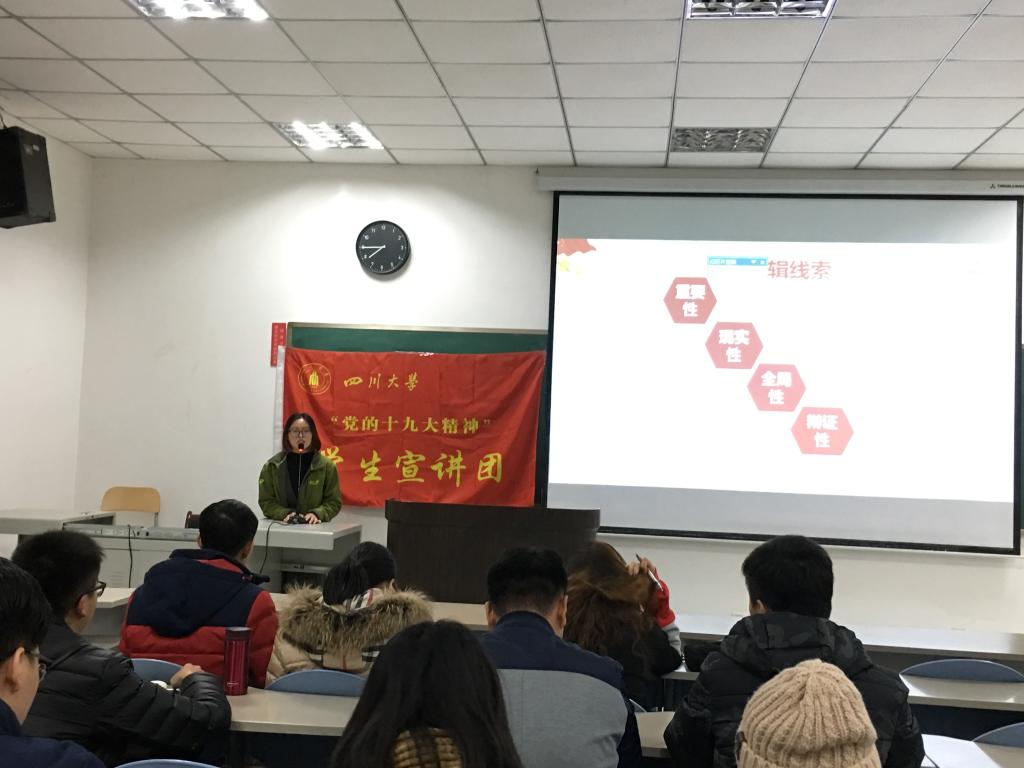2017年11月22日晚7:00时,由材料学院和公共管理学院共同举办的党的十九大精神宣讲会顺利在公共管理学院105教室召开,会上学生宣讲团的刘林同学和马克思主义学院的张桃娟同学就十九大精神分别作宣讲报告,材料学院和公共管理学院50余名同学参加。