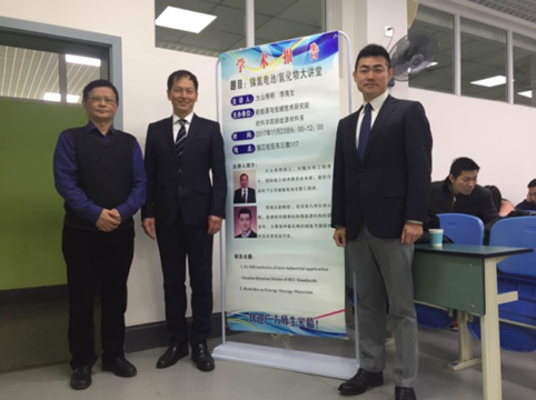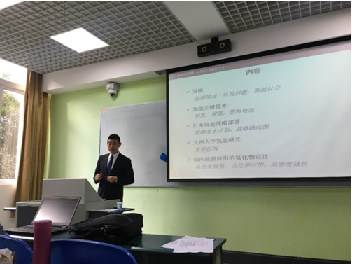 在同学们的阵阵赞叹声中,大川秀明博士开始了报告,他主要就Ni-H电池最新的产业化应用以及Ni-H电池的国际化标准现状及进展方面做了详细阐述和剖析。随后,李海文副教授以氢能为主题展开了第二个报告,他对于国内外氢能及燃料电池的现状、发展前景趋势进行了详细且有深度的阐述;并在实验室安全方面,对比了国内外的思想、安全设施及紧急应对措施的差别,提出了自己独到的见解,其幽默风趣的演讲让报告的氛围达到了最高潮,在同学们依依不舍的思绪中,报告走近尾声。