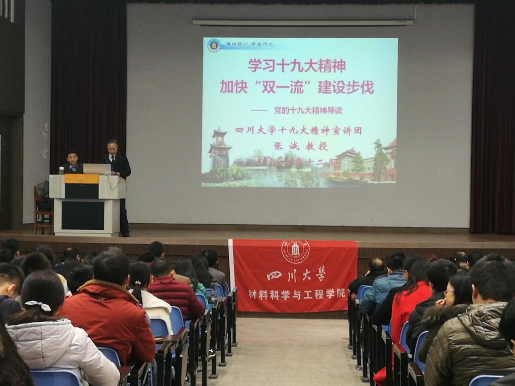 张诚教授以“学习党的十九大精神,加快‘双一流’建设步伐”为题,从“十九大的里程碑意义、十九大的主要精神、联系实际学习贯彻十九大精神”三个方面,对党的十九大精神进行了全面系统的宣讲。