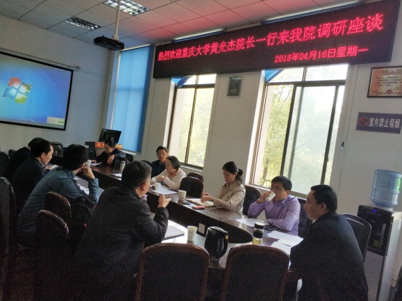 林院长首先代表学院对重大黄院长一行的来访表示热烈欢迎。之后,双方分别就各自学院的建设规划、学科布局、本科专业设置、教学质量提升措施、科研团队建设、绩效考核办法、成果转化措施及国际交流等情况进行了介绍。然后,双方就重点关心的问题进行了深入交流与探讨。交流会一直持续到中午12:00还意犹未尽,一致认为此次交流收获匪浅,为人才培养和学科建设提供了新的经验,今后要进一步密切联系加强交流和合作,共同进步和发展。