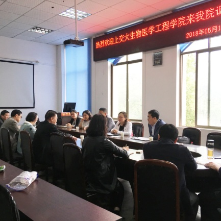 5月11上午9:00,上海交通大学生物医学工程学院副书记周申申、院长助理白景峰、特聘教授魏勋斌、特聘研究员李海燕、党政办主任沈琴一行6人来我院调研,我院党委书记尹光福、副书记张晓满、副院长林江莉和吴家刚、无机生医系主任芶立、无机生医系支部书记黄忠兵、副系主任邹远文老师参加了本次调研座谈会。