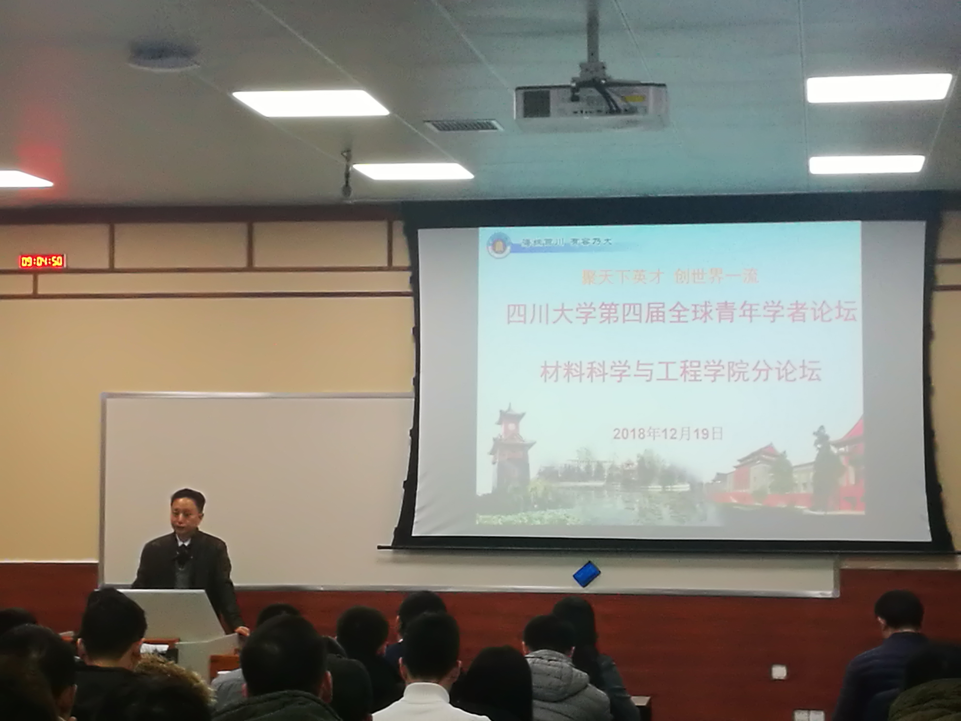 论坛由材料学院党委书记尹光福教授主持。尹书记首先代表学院师生向11位青年才俊的到来表示了热烈欢迎,接着介绍了与会的各位领导与专家学者。接着,材料学院院长刘颖简要介绍了学院的情况与未来学科发展规划的方向,希望优秀青年学者通过本次论坛,了解川大并加盟材料学院。