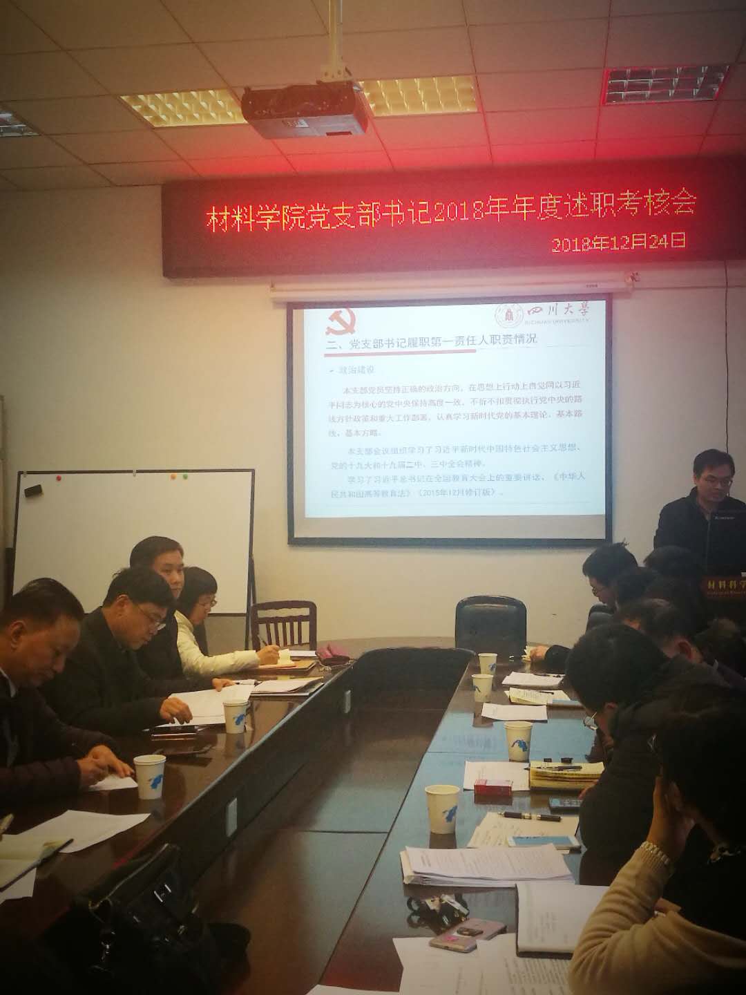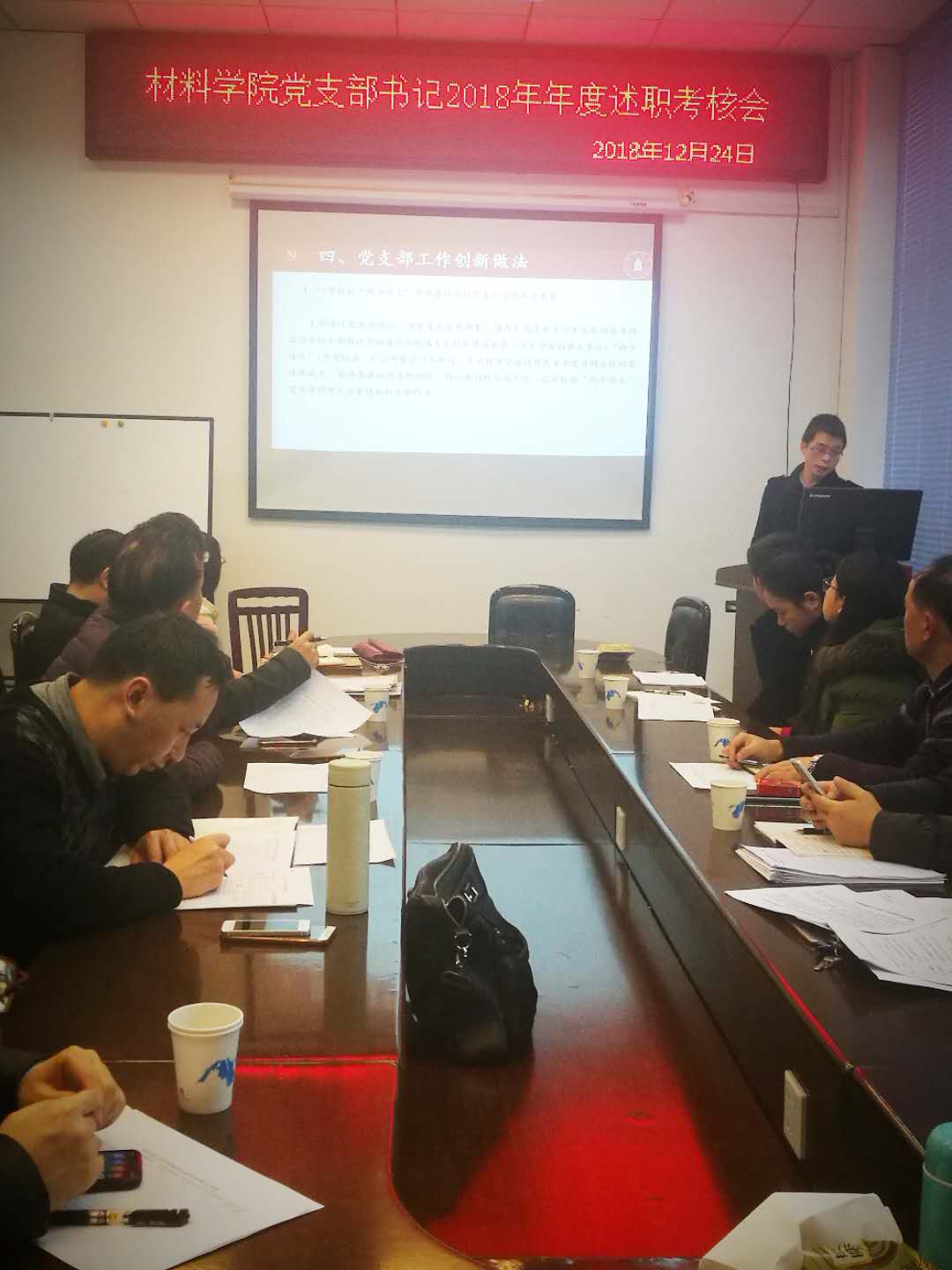 2018年12月24日11:00,我院党支部书记年度述职考核会在第一理科楼williamhill中国官方网站会议室召开,我院党委书记尹光福,院长刘颖,党委副书记张晓满及各支部书记、副书记参加了此次述职考核会,会议由党委书记尹光福教授主持。