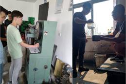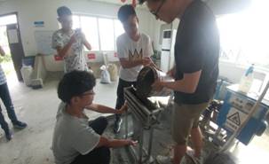 图1.本科生进行透水混凝土制备、混凝土强度测试和透水性能检查实验