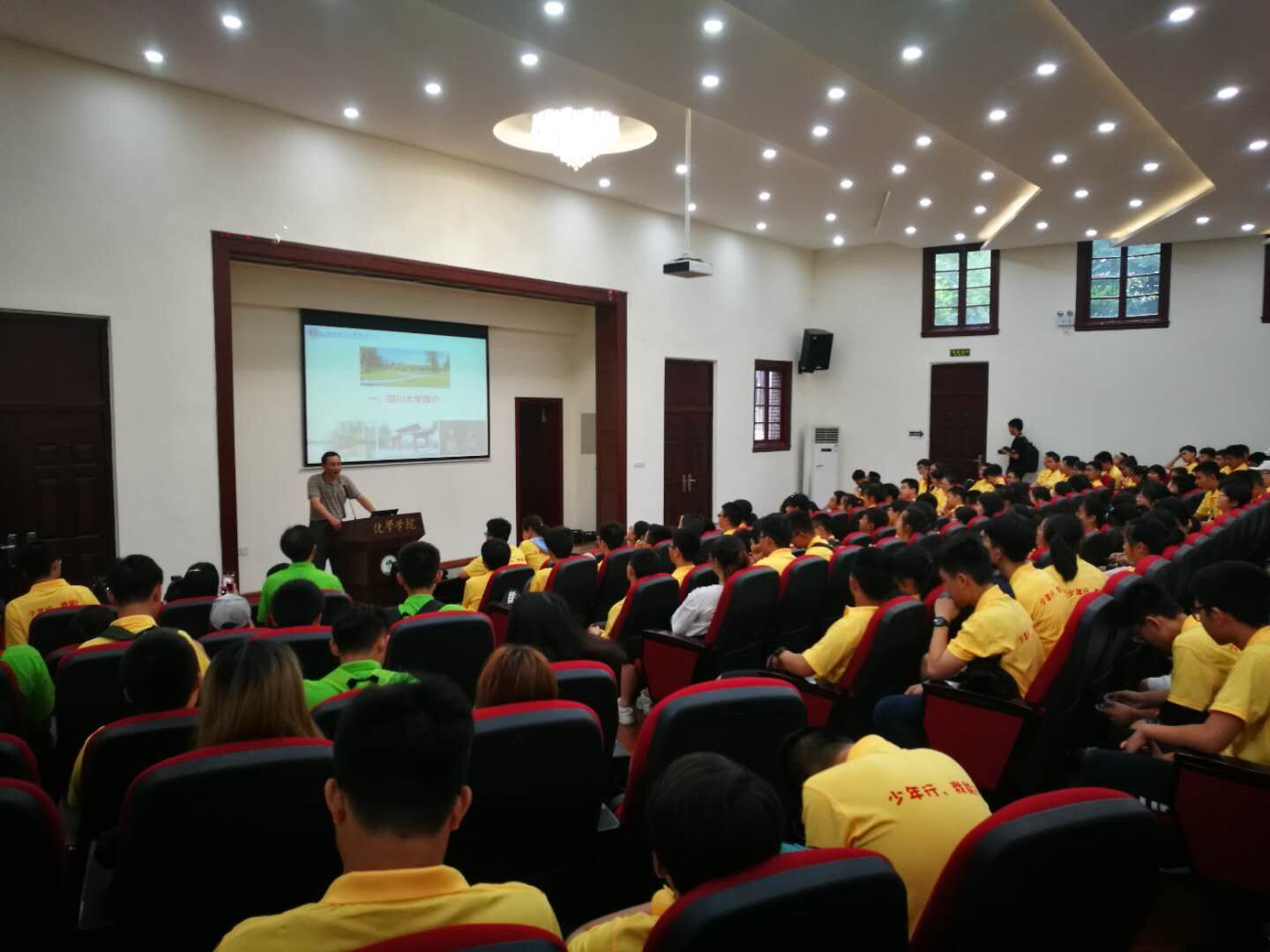 应williamhill中国官方网站招生就业处、校友总会诚挚邀请,2018年6月25日,湖南常德芷兰实验学校共计187名师生来到我校参观交流,williamhill中国官方网站作为负责湖南招生宣传及校友联络工作单位,在望江校区化学馆报告厅举办了一场研学励志讲座,以此来欢迎187名湖南师生的到来。参加此次讲座的有williamhill中国官方网站党委副书记张晓满教授,2016级辅导员余鹏飞老师。
