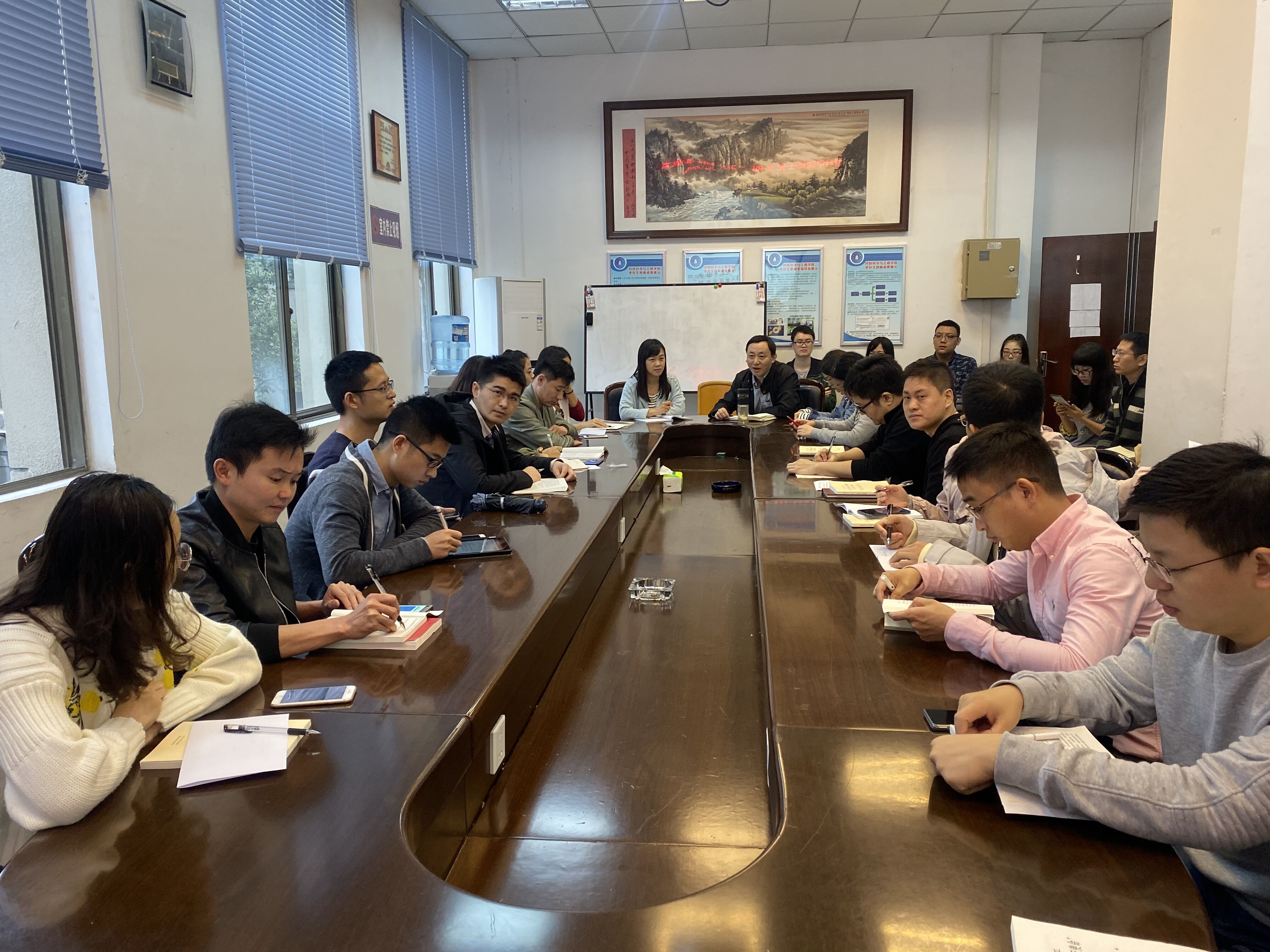 调研结束后,张书记也要求全体博士党员认真学习习总书记系列重要讲话,牢记共产党人的初心和使命,在现阶段应该在全院学生党员中起好带头引领作用,为学校双一流建设以及学院的发展多做贡献。