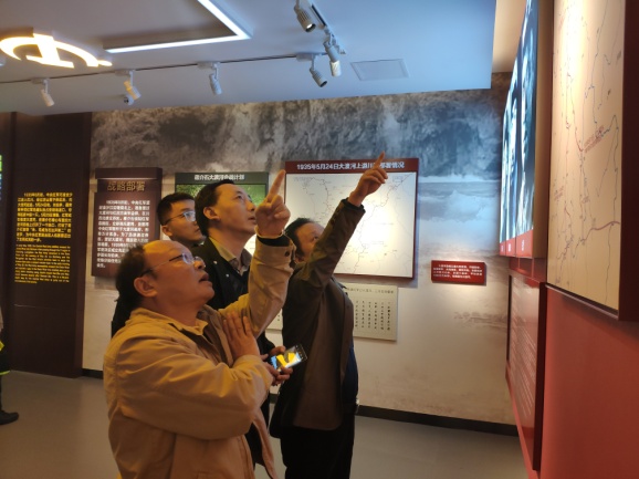 在讲解员的引导和讲解下,大家参观了红军强渡大渡河纪念馆,展馆内珍贵的照片、视频、文物档案等材料让历史重新展现,夜袭安顺,巧夺孤舟,红一团一营营长孙继先率领十七勇士,冒着枪林弹雨,强渡了被国民党军视为不可逾越的天险大渡河,粉碎了蒋介石妄图将中央红军聚歼于大渡河的阴谋。大家深刻体会到当年强渡大渡河时军民团结、一心抗敌的勇气和决心,对中国工农红军在安顺场视死如归的壮举感到无比震撼。