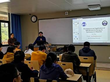 在报告中,赵焱教授主要介绍了他在密度泛函方法和波函数方法领域的研究工作,第一部分介绍了M06系列泛函的开发评价和应用,第二部分介绍了最近开发的WMS模型化学(Model Chemistry)方法,以及在锂硫电池、CO2催化等前沿新材料开发中的应用。最后,在提问环节,大家踊跃提出问题,互动气氛十分融洽。赵老师高深的见地和科学素养赢得了在座师生的热烈掌声,将报告推向高潮。