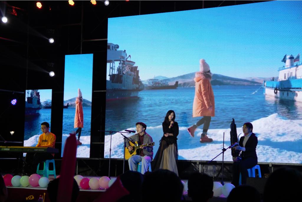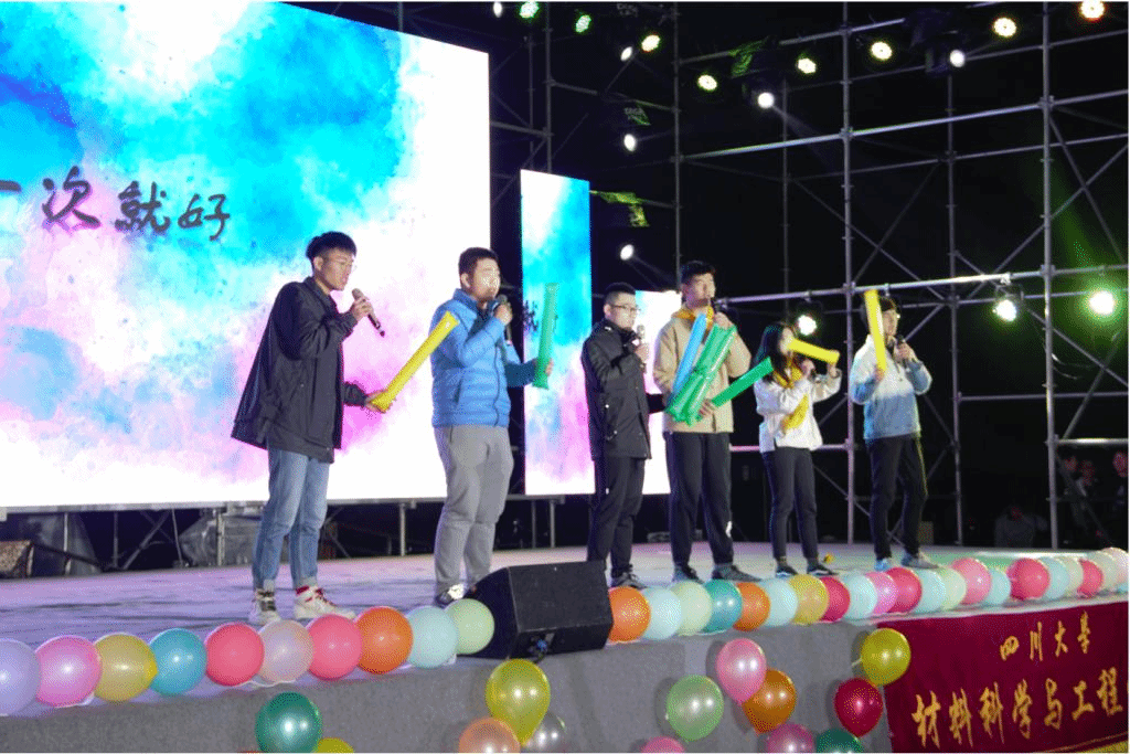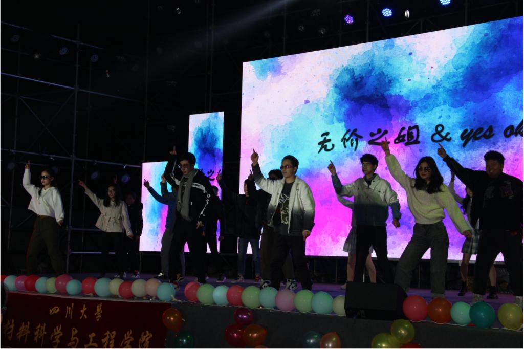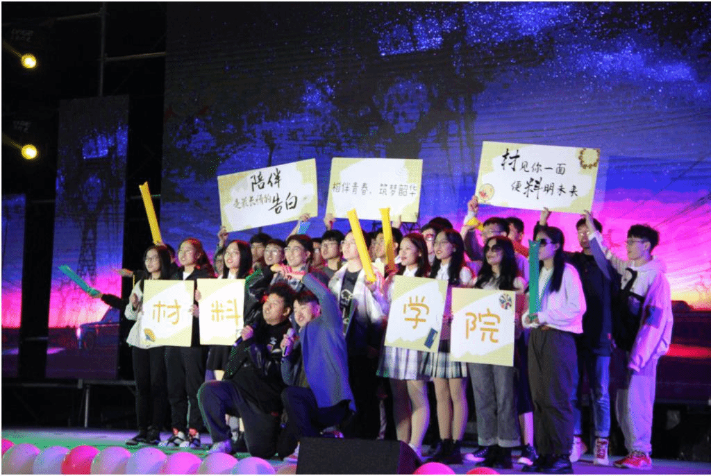 同学们的歌声优美动听,余音绕梁。材料三班同学一曲《贝加尔湖畔》带观众们来到了北方静谧安宁的冰雪世界,研究生们动情歌唱的《男孩别哭》、陈丹纳同学独自完美演绎的《胡桃夹子》、罗渝同学轻松演唱的《3 things》、五班联合呈现的《拉望德》接连上演,令人感受到音乐的无穷魅力,沉醉其中。尤其是由材料五班同学用荧光杯伴奏演唱的《稻香》,将晚会气氛推向了高潮。