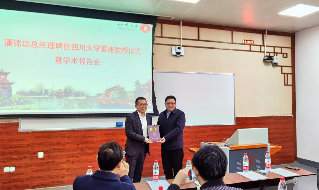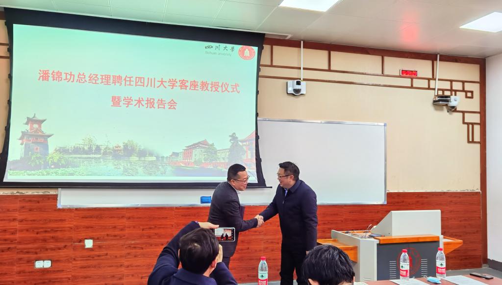 1月15日下午,williamhill中国官方网站,William希尔官网入口客座教授聘任仪式在williamhill中国官方网站东区第二教学楼101教室隆重举行。政协成都市双流区委员会委员、成都中建材光电材料有限公司总经理潘锦功先生受聘学校客座教授。学校党委副书记郭勇教授、学院党委书记蒋青教授、院长刘颖教授、党委副书记张晓满教授、副院长吴家刚教授、院长助理叶金文教授、朱小红教授、成都中建材光电材料有限公司相关负责人出席授聘仪式。仪式由党委书记蒋青教授主持。