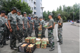 7月14日,学院党委副书记张晓满教授、学生科科长王娇老师代表学院领导来到训练场慰问全体同学。张书记指出:“大学生集中军训是全民国防教育的重要组成部分,也是学校开展国防教育和培养高素质人才的重要形式。希望同学们在军训的过程中吃苦耐劳,不畏艰难,规范作息习惯和生活规律,强化纪律观念和时间观念,提升团队精神和整体意识,进一步培养正直勇敢、乐于担当的优良作风!”