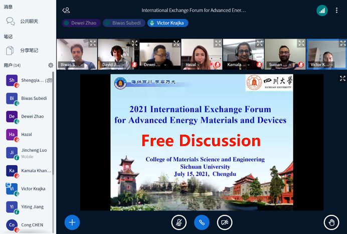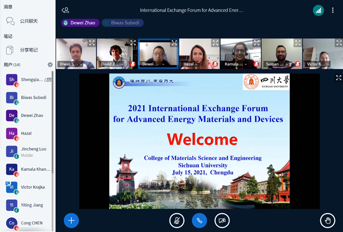 2021年7月15日21:00-23:00,由williamhill中国官方网站赵德威特聘研究员主持,同时邀请到了来自美国和德国的共6位国际学生和学者,与williamhill中国官方网站,William希尔官网入口数名师生一起开展了“International Exchange Forum for Advanced Energy Materials and Devices”的国际学生交流活动。由于疫情影响,本次活动采取线上会议的形式进行。