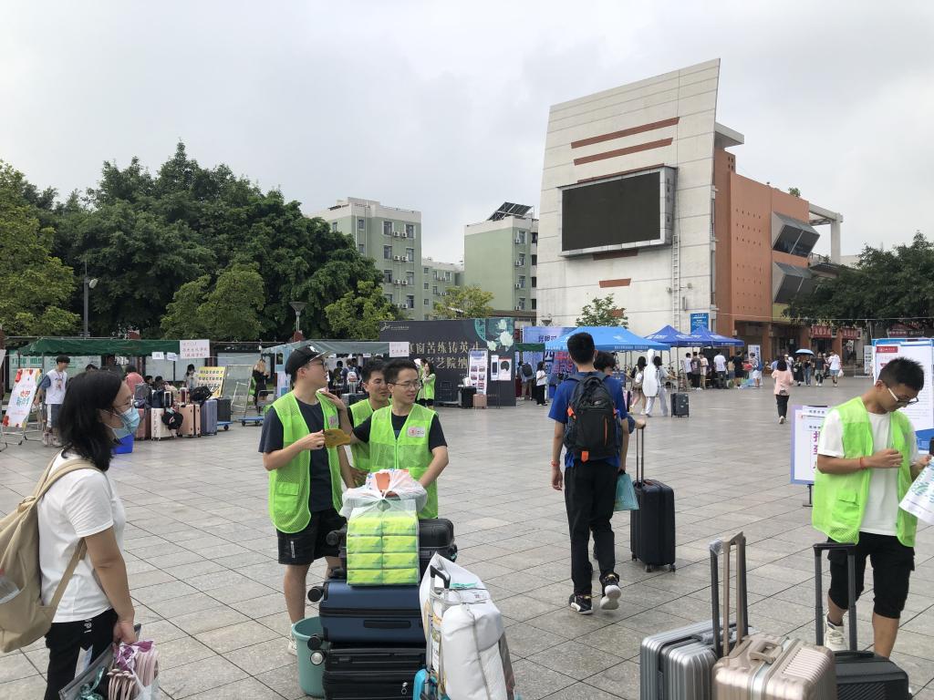 志愿者在为新生搬运行李