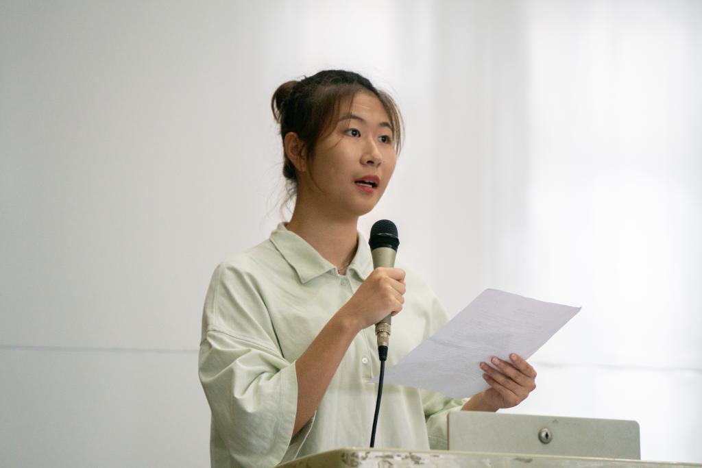 最后,2021级新生代表蔡情同学代表全体新生讲话。首先她对全体学院老师和学长们表示了感谢。随后她表示作为新时代的川大青年要勇于奋斗,勇于拼搏,并立志在川大材料学院能够闪闪发光,为祖国材料事业的发展做出属于自己的贡献!