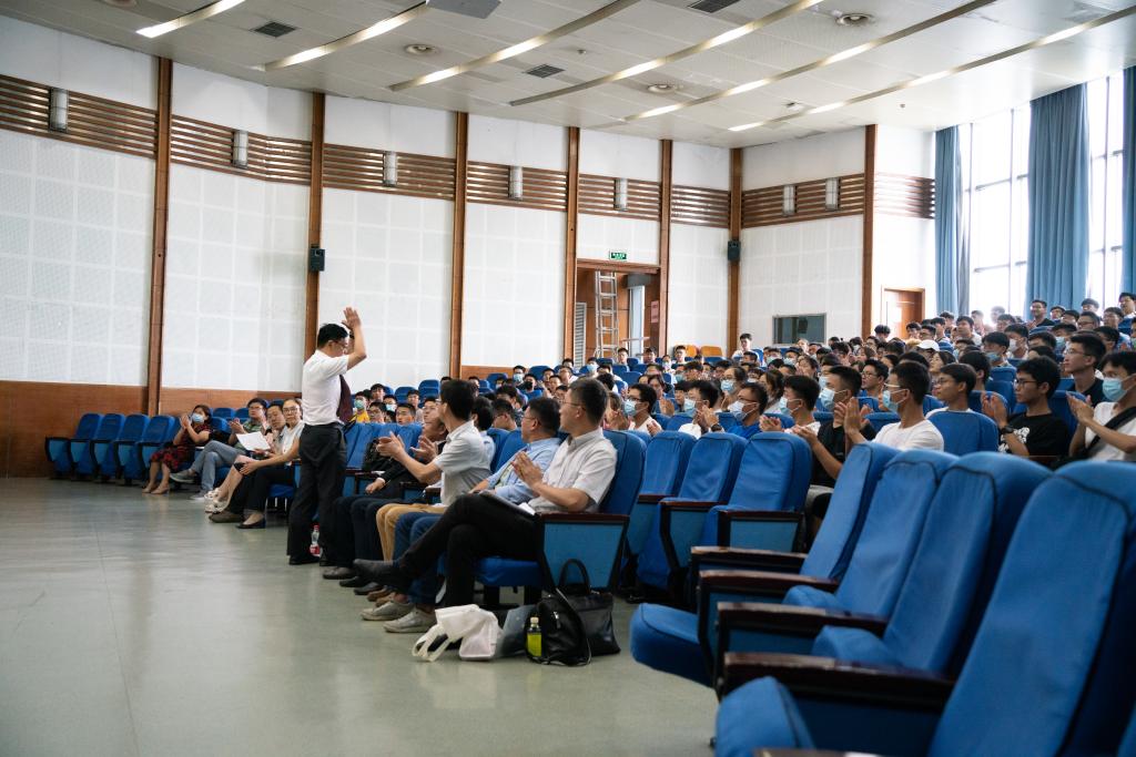 而后,2018级的优秀老生代表张鸿杰同学代表全体学长们发言。他讲述自己从大一到大四的经历,勉励新生们要在大学多做有意义的事,珍惜成长机会,多去挑战自己,争取能在大学本科生活的四年里不给自己留有遗憾。