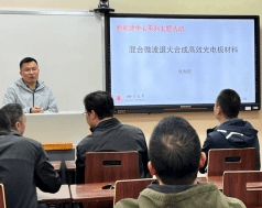 主题党日活动结束后,张和民老师为全体中心老师做了关于“混合微波退火合成高效光电极材料”的交流报告。张老师介绍了包括一维、三维高结晶性Fe2TiO5纳米结构光阳极,新型氧化铁II型异质结,钽梯度掺杂的氧化铁同质结,以及混合微波退火在氮离子植入二氧化钛方面的恢复和激活作用等研究动态和科研成果。报告结束后,与会老师进行了广泛的学术讨论。本次学术交流活动,是新能源中心“永远跟党走,建功新能源”主题学术交流系列活动之一。