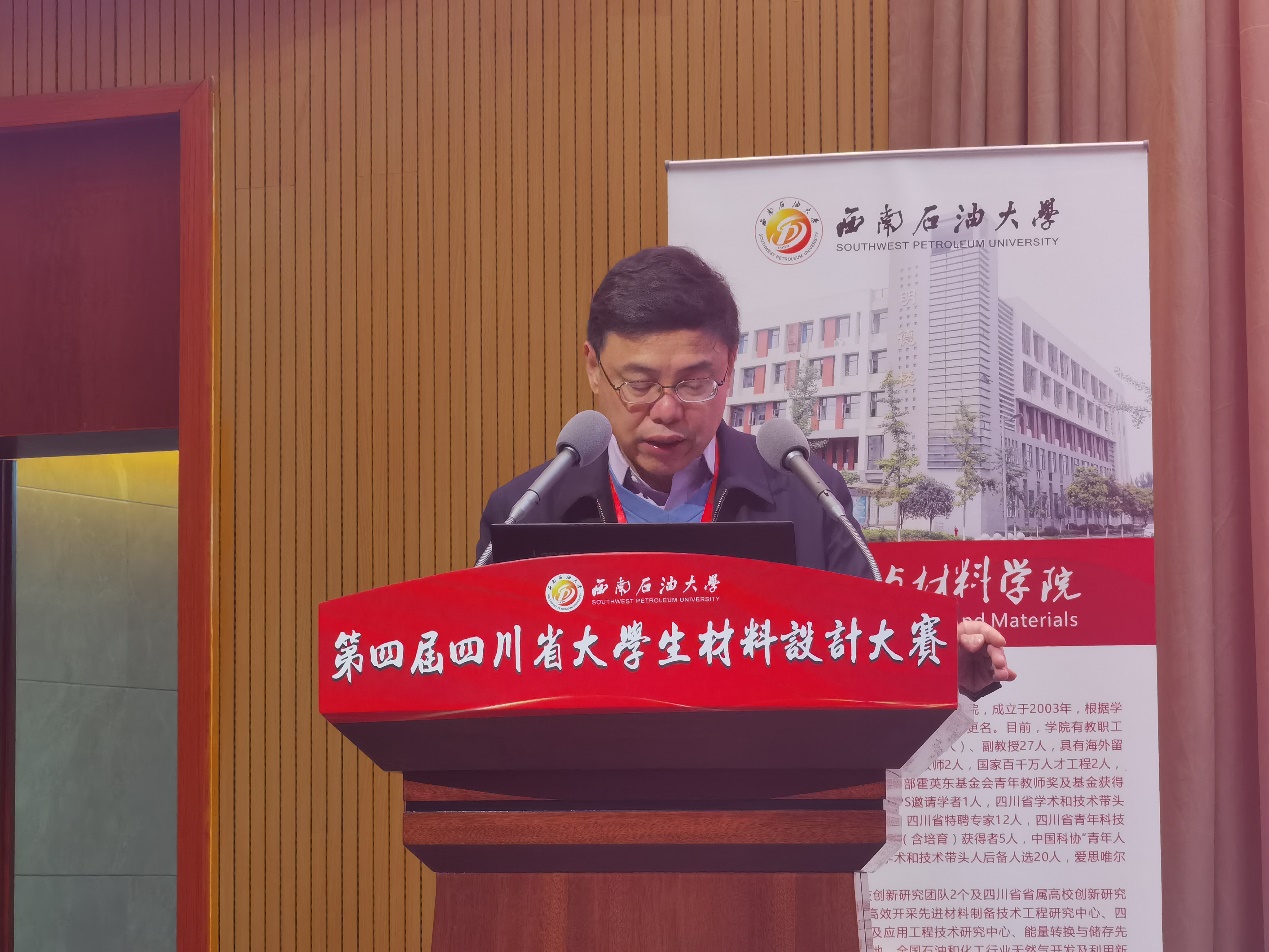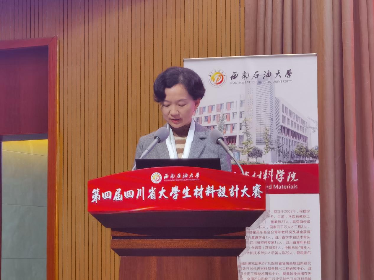10月29日,由四川省教育厅、西南石油大学、williamhill中国官方网站共同主办的第四届四川省大学生材料设计大赛在西南石油大学成都校区举行。西南石油大学副校长刘向君,以及williamhill中国官方网站、四川省金属学会、电子科技大学、西南交通大学、成都理工大学、西南科技大学、成都信息工程大学、西华大学等19个单位的32支队伍、160余名师生参加大赛,600余名师生线上与线下混合模式观摩了大赛。我院院长、大赛专委会主任刘颖教授,副院长叶金文教授率队参赛,刘颖教授作开幕式致辞。