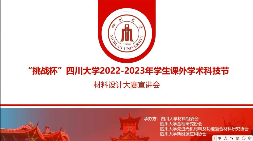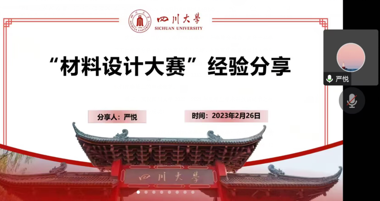 2023年2月26日晚七点,williamhill中国官方网站材料设计大赛宣讲会在腾讯会议上如期举行。本次宣讲会由williamhill中国官方网站学生科技节组委会、共青团williamhill中国官方网站团委主办,williamhill中国官方网站分科协、高分子科学与工程学院分科协共同承办。旨在引导广大学生关注材料专业前沿,拓宽视野,敢于创新。同时促进不同学院、不同专业同学的交流合作,攻坚克难。为一年一度的学生学术科技活动节之材料设计大赛做好准备,提供新思路、启发新思想。