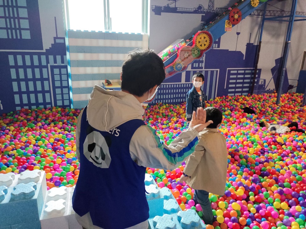 去到二楼“三寻—寻知、寻智、寻迹”展厅的成员帮助小朋友更好的使用展品,让他们通过亲身体验而领悟其中的科学知识,同时也帮助科技馆维护展品的正常运行,及时处理展品故障。