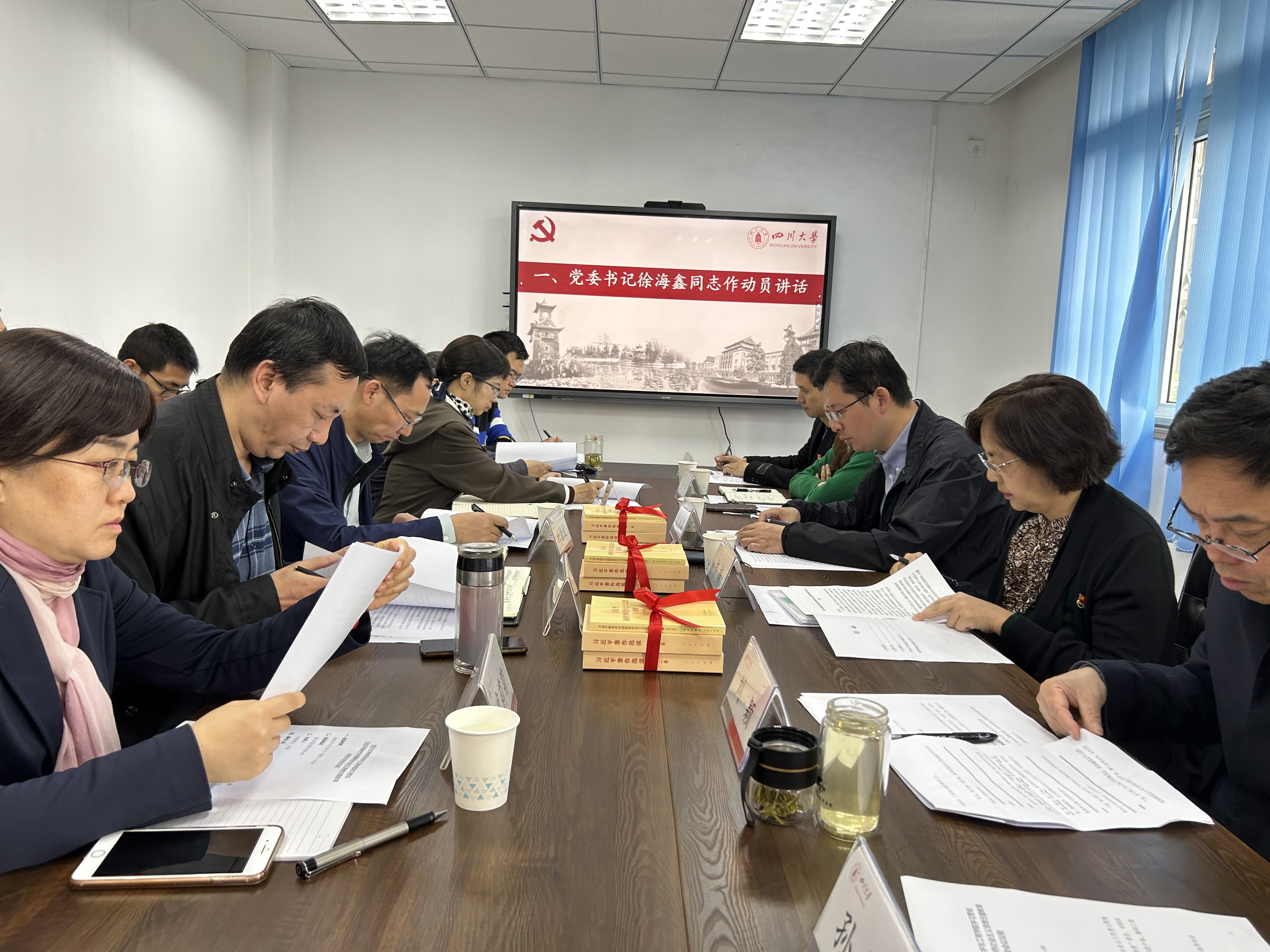 会后,举行了授书督学仪式。邱梅、徐海鑫、刘颖分别为新能源材料与器件教研中心党支部、博士生党支部、本科生望江党支部授予《习近平新时代中国特色社会主义思想学习纲要》《习近平著作选读》第一卷和第二卷,希望通过授书督导基层支部扎实开展主题教育,认认真真学、原原本本学,进一步增强工作本领。
