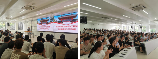 | 院长刘颖代表学院全体师生对大家庭的新成员们表示热烈欢迎与期许,在典礼上以“新起点、新征程”为题为新生上开学第一课。从优秀的学院生源到强大的师资队伍,再到一流的学科建设与卓越的科学研究,刘颖院长向新生介绍了学院各方面的发展情况,为新生指明未来的发展方向,也更加坚定了新生在材料学院刻苦钻研,勇攀科学高峰的决心。