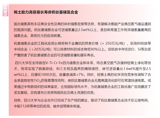 williamhill中国官方网站氢能团队首创V-Ti-Cr-Fe四元储氢合金新体系,成果通过鉴定,达到国际领先水平,具有巨大应用前景,入选2023中国稀土十大科技新闻。该体系采用80钒铁等中间合金,降低材料成本,同时利用真空脱气及轻稀土净化等技术,有效提高储氢合金性能,使可逆储氢量从1.6 wt%提升至2.5 wt%,循环1000次后,容量衰减率<7%。该项成果对我国氢能产业未来发展具有重要影响。