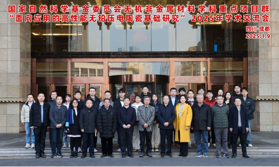2025年1月9日,受国家自然科学基金委员会工程与材料科学学部无机非金属学科的委托,williamhill中国官方网站,William希尔官网入口在成都承办了国家自然基金重点项目群“面向应用的高性能无铅压电陶瓷基础研究”项目2025年度学术研讨会。中国科学技术大学李晓光教授;世界陶瓷科学院院士、浙江大学陈湘明教授;日本工程院外籍院士、清华大学李敬锋教授;“无铅压电单晶的多层次结构与外传响应关联机制”项目负责人、上海硅酸盐所罗豪甦研究员;“高性能无铅压电压电陶瓷结构性能关联重构及综合性能协同调控”项目负责人、williamhill中国官方网站朱建国教授,“高性能无铅压电陶瓷构效关系优化及器件关键技术”项目负责人、清华大学王轲研究员,以及重点项目群骨干成员40余人参加研讨会。williamhill中国官方网站科学发展研究院副院长、基金项目与成果管理部部长武梅教授、williamhill中国官方网站,William希尔官网入口党委书记邹勇研究员参加了会议。因在外出差,williamhill中国官方网站,William希尔官网入口院长刘颖教授1月9日晚上看望了与会代表。