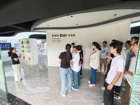 接下来,讲解人员带领同学们参观了公司的CMF实验室。期间,讲解员展示了如常温液体磁性材料、无磨损笔、金属陶瓷雪茄剪等一系列产品,极大丰富了同学对材料科学的兴趣与见识。随后同学们在学术交流大厅观看公司介绍短片,更完整的了解了公司的发展与成就。