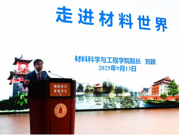 刘颖院长代表学院全体师生对大家庭的新成员们表示热烈欢迎,在典礼上以“走进材料世界”为题致辞开学第一课。从学院的历史沿革到教育教改与科研,再到立德树人,刘颖院长向新生介绍了学院各方面的发展状况,为新生指明了未来前进的方向,也更加坚定了新生在材料领域刻苦钻研,勇攀科学高峰的决心。