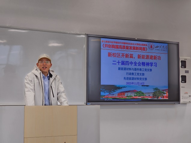 为了深入学习贯彻《中国共产党第二十届中央委员会第四次全体会议公报》《中共中央关于制定国民经济和社会发展第十五个五年规划的建议》等文件精神,进一步了解学校在“十四五”期间取得的重大成就和深刻领会学校在高质量发展道路上的谋篇布局,更好地汇聚师生智慧谋划好学院“十五五”发展规划,以奋斗姿态保证我院各项事业在“十五五”开好局、起好步,11月14日,我院组织新能源教工党支部、行政教工党支部、先进能源材料党支部、材物化及新能源硕士生党支部、材料学及纳米材料硕士生党支部、本科生望江党支部的师生党员,前往我校眉山校区联合开展“新校区开新篇、新能源建新功”的主题党日活动。在眉山校区管委会秦老师的带领下,师生一行参观了眉山校区岷峨楼、体育馆、东坡书院等建筑群,近距离感受眉山校区的建设成就和空间规划,进一步了解到学校在眉山校区的新技术研发、高水平交叉学科及中试平台、人文社科研究、国际合作交流基地等战略布局。在眉山校区报告厅,学院组织师生上党课,共同学习领会二十届四中全会公报精神,学习《习近平谈治国理政》第五卷和习近平总书记近期重要讲话、重要回信和重要文章的精神。围绕学院“十五五”事业发展规划的编制,师生就过去五年党建与学科及专业融合发展取得的成效、目前面临的机遇与挑战、下一步发展存在的问题展开了热烈的讨论。经过党课学习和现场研讨,进一步凝练了各支部未来五年建设的目标任务,提出了既符合实际又体现“支部+学科”优势特色的实现路径与举措。在眉山校区期间,师生还进行了知识竞赛和趣味工会活动,将学习推向了高潮。