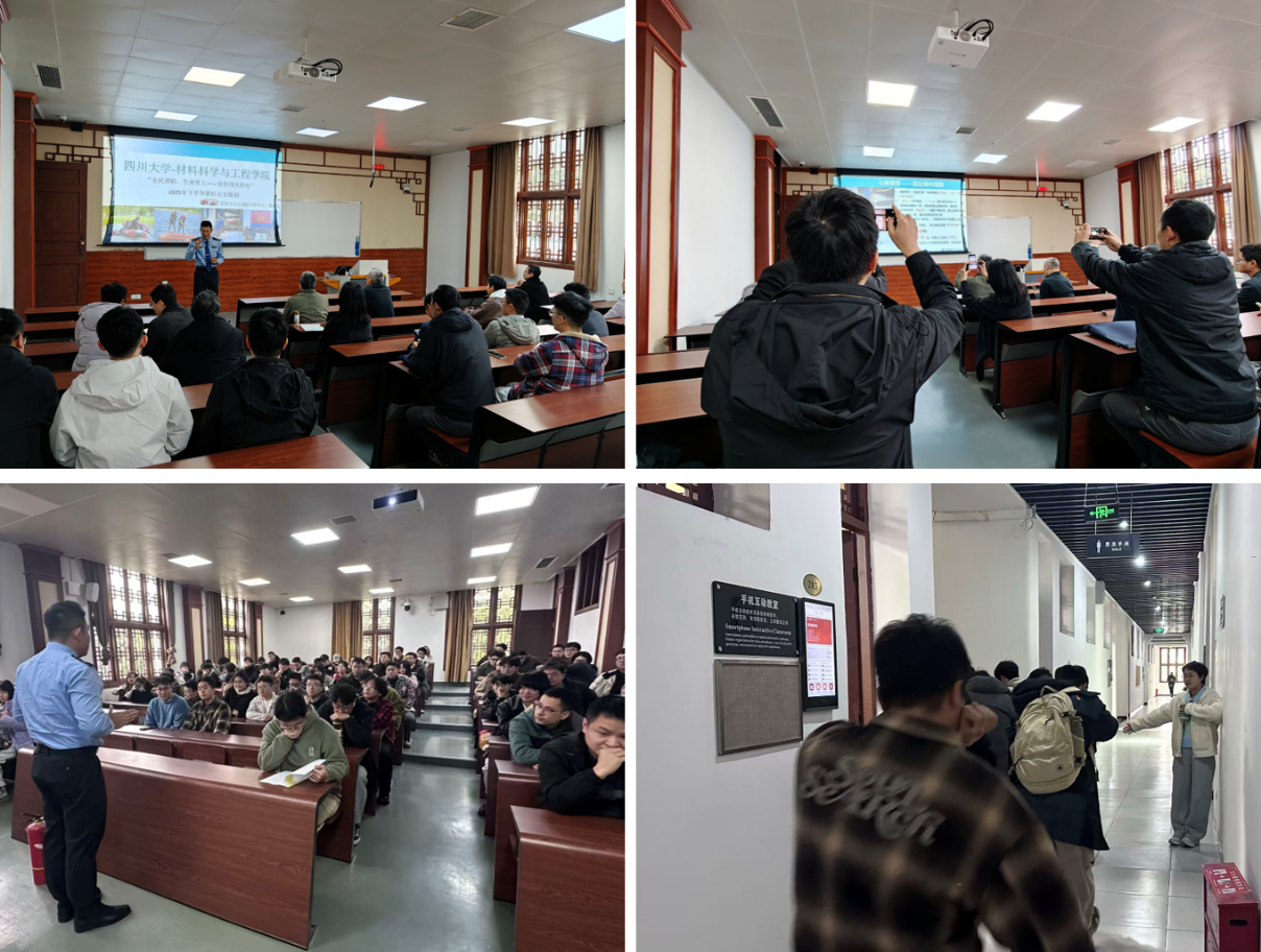 为深入贯彻“全民消防、生命至上”的消防安全理念,切实强化师生消防安全意识与应急处置能力,结合材料学科实验环节多、设备复杂的专业特点,2025年11月,材料学院精心策划并组织了涵盖知识宣讲、安全培训、应急演练、隐患排查等消防安全月系列活动,以理论与实践深度融合的方式,为校园安全筑牢“防火墙”。