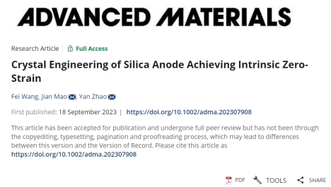 近日,我院毛健教授团队在材料学顶级期刊Advanced Materials发表题为:Crystal Engineering of Silica Anode Achieving Intrinsic Zero-Strain的研究。第一作者为副研究员(专职科研)王飞,该文通讯作者为材料学院的毛健教授和赵焱教授,第一作者单位为williamhill中国官方网站。该研究提出了一种新型的零应变硅基负极材料结构设计方式,对于硅基负极材料的科学研究和商业化都具有重要意义。