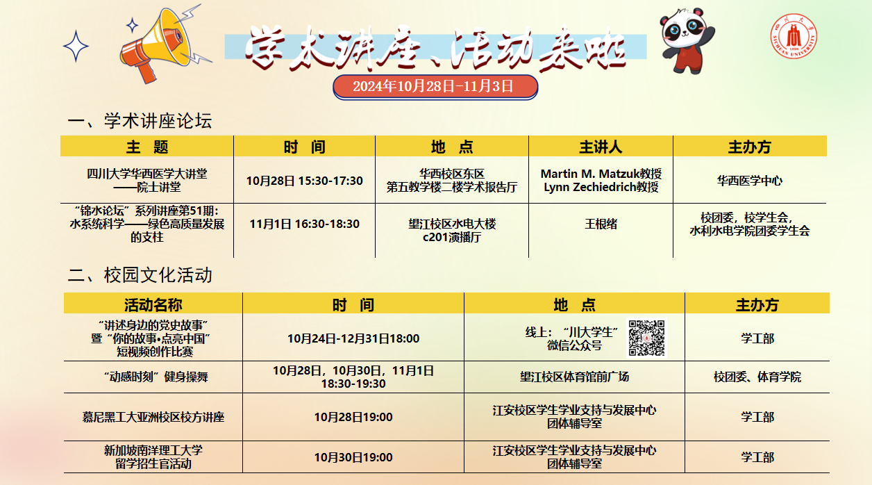学术讲座论坛及校园文化活动预告(10月25日-11月3日).docx