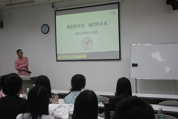 本次活动邀请了川大第17届支教团队中的成员彭博同学作为嘉宾为到场同学介绍支教地区的一些情况。彭博同学首先为大家讲述了当地的人文风情,民族习俗,而后又为大家介绍了当地学校的教育状况。听到他描述山区条件多么艰苦,而孩子们又是多么坚强和努力时,在场的同学都被深深地感动了。彭博同学最后还给大家介绍了支教团的工作情况,各地爱心人士的行动,以及他在昭觉支教一年来的心得体会。他的讲述深深地感染了大家,凉山州的贫瘠和各地人士的爱心扶持都在大家心里留下了深刻的印迹。