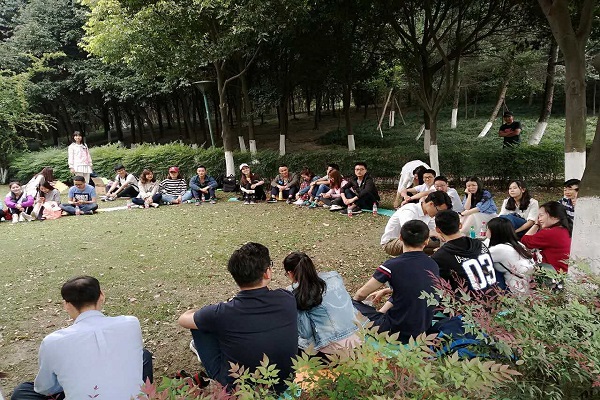 不高山下,绿树成荫,凉风阵阵,荡涤着大家的心扉。活动方为大家准备的游戏均是要求小组之间共同协作、相互信任、配合默契的“心动”游戏。现场气氛欢快不已,才子们的阳光灿烂和含情脉脉,佳人们的垂目羞涩和莞尔一笑让青春的青涩与甜蜜填满了整个会场。