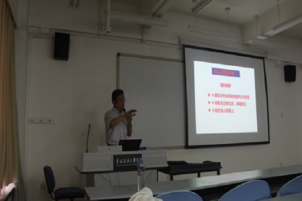 下午2点一过,满怀热情的同学们就早早来到了教室等候讲座开始;2:20,周教授提前来到教室准备开展讲座;2:30一到,在同学们的热烈掌声中,讲座正式开始。