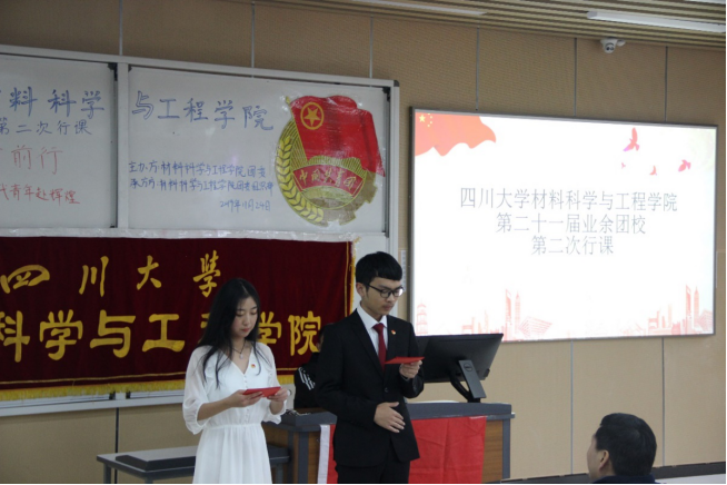 在主持人的带领下,全体同学肃立齐唱团歌。而后,苏德强老师开始了主题为“小我融入大我:做新时代青春追梦人”的团校第二次授课。