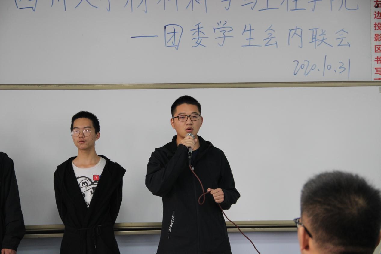 2020年10月31日下午,williamhill中国官方网站团委学生会内联会于一教b407隆重举行。参与本次活动的有院团委副书记肖闳畅﹑学生会执行主席马子涵﹑各部门部长副部长和2020级全体学生会干事。本次内联会的活动流程分为:学生会代表致辞、部门干事介绍、部门节目展示、中场游戏以及压轴游戏。