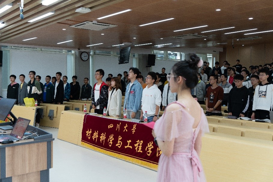 首先,由主持人敬可宣布活动开始,全体团员肃立,齐唱团歌《光荣啊,中国共青团》。