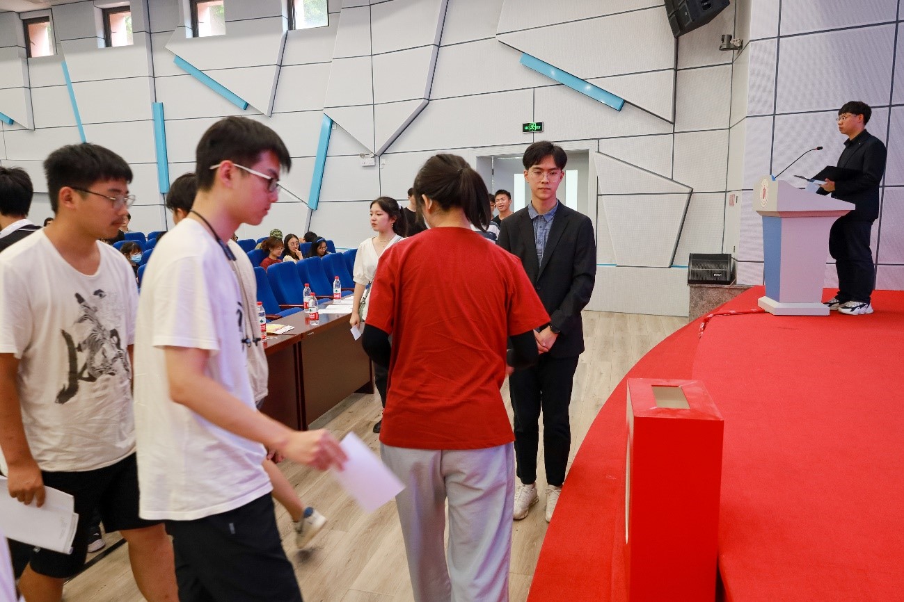会议在嘹亮的团歌中拉开帷幕。首先由学院团委书记余鹏飞老师致辞。余鹏飞老师对学院学生会在过去一年中的努力给予了肯定,并着重强调了培养创新精神和提高个人修养在团学工作中的重要性,对学院未来的团学工作寄予更高期望。