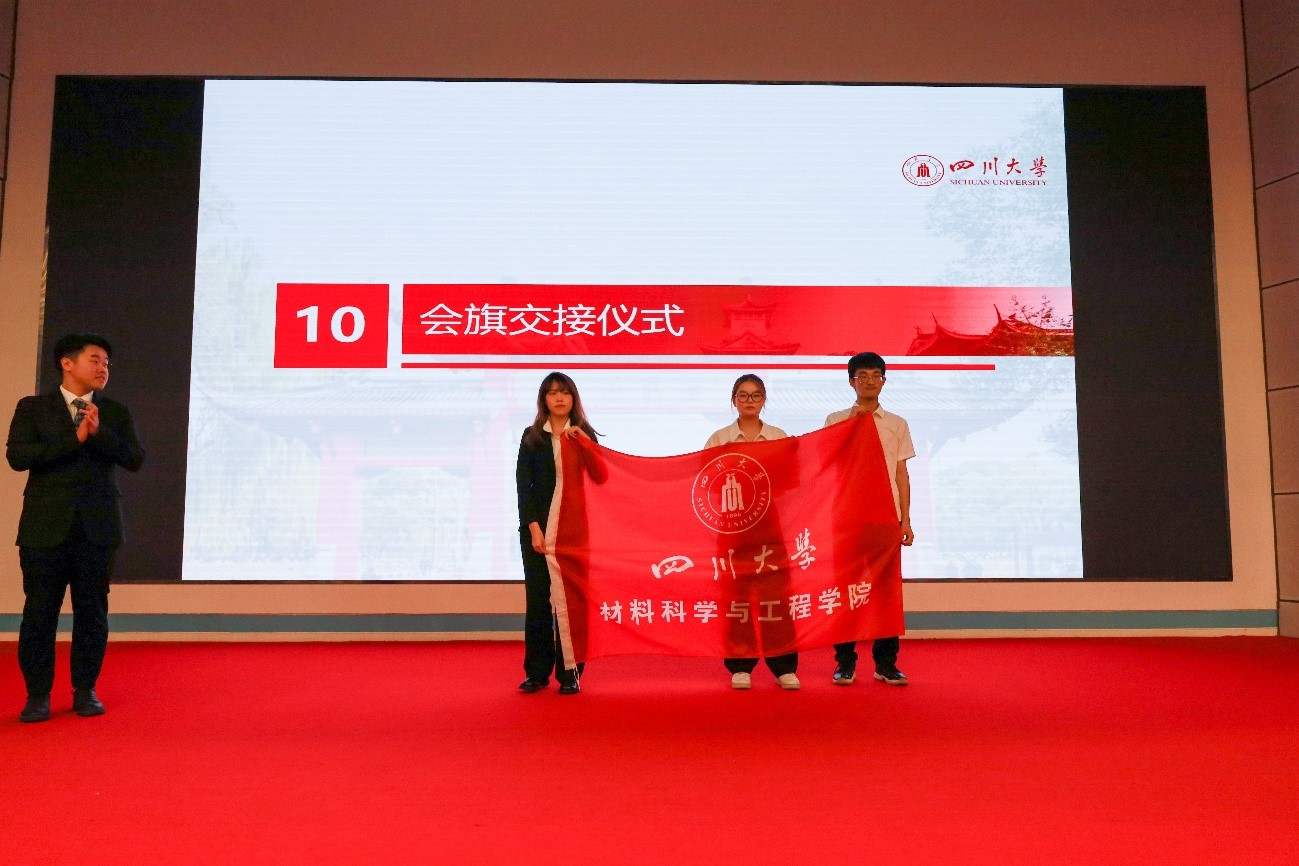 紧接着,大会进入了2022-2023年度主席团成员述聘环节。主席团候选人余晓沛、王欣语、张鼎炎依次登台进行竞选演讲,三位候选人分别简要介绍了自己的个人情况、工作经验和未来工作规划等内容。演讲结束后全体学生代表通过无记名投票方式进行民主选举,经统计产生了学院2022-2023年度主席团成员,余晓沛当选学生会主席,王欣语和张鼎炎当选学生会副主席。随后,第十届学生会主席雷博睿将我院学生会会旗递交给新一届主席团成员,完成了会旗交接。