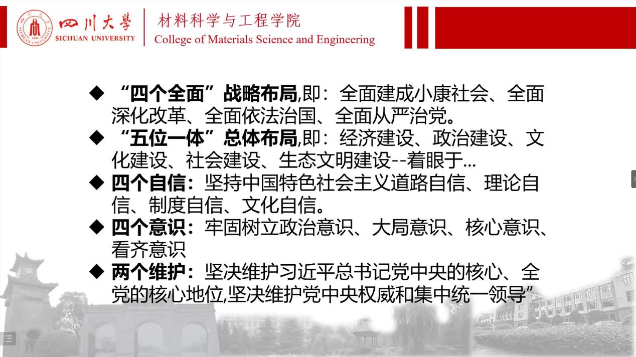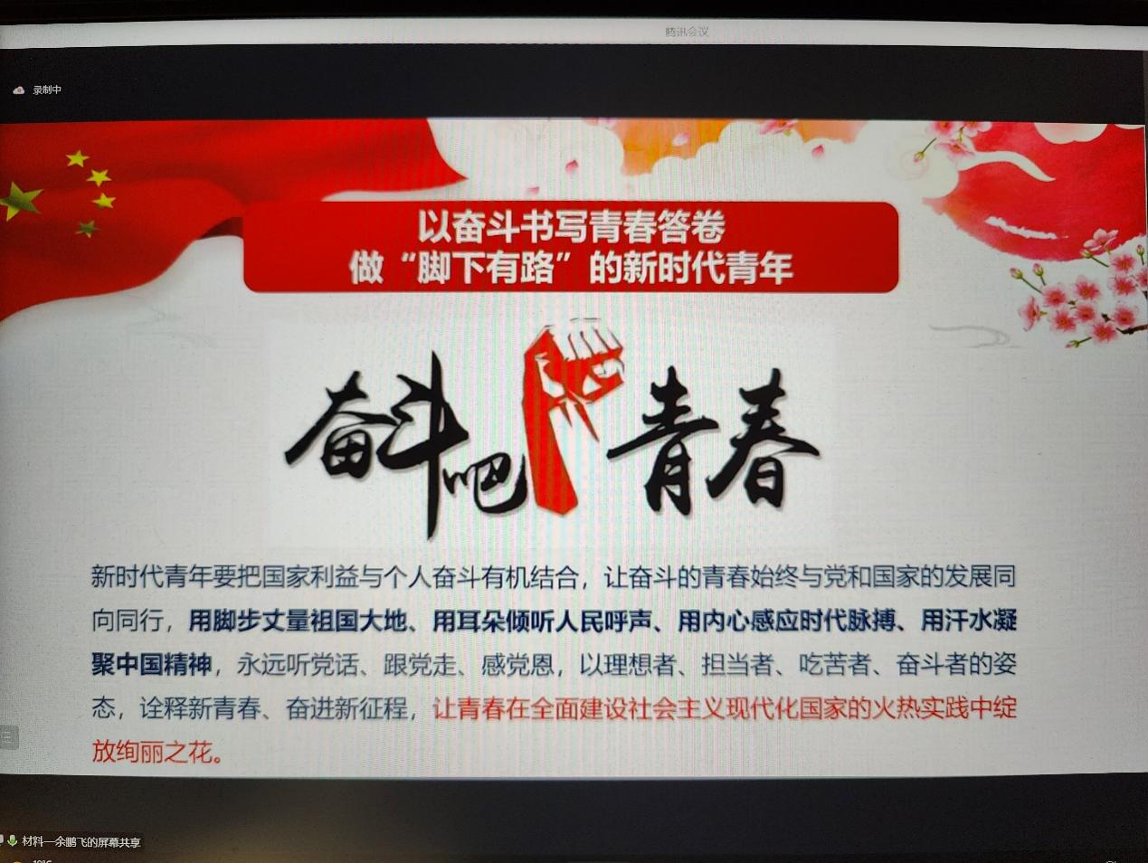 随后余老师带领同学们回望马克思、毛泽东、习近平等伟人的青年时代,并总结他们的共同点,为同学们指明奋斗方向。同时,余老师为同学们展示了我国在某些科技领域与西方世界仍存在一定差距,并指出同学们不能沉浸在娱乐游戏中,要强身健体、刻苦学习,深刻领会中国特色社会主义理论知识。